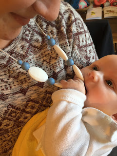So when I was sent a Boobie beads teething necklace to review I was so happy. We have brought Ava many teething items over the past few weeks and she hasn't been interested in them at all. So I really didn't know how she would take to the necklace. As soon as I put it on and showed it her it was straight in her mouth, chomping on it with great enjoyment.